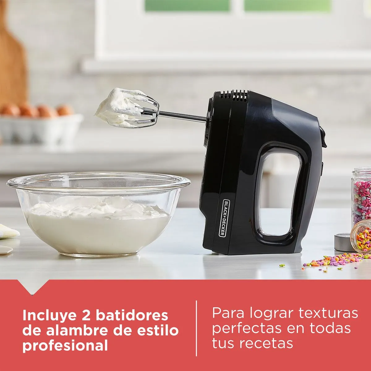 | Batidora Black+Decker de mano liviana Negra, MX1515-1BDLA | Mezcla tus recetas favoritas con facilidad y rapidez con la batidora de mano liviana. |