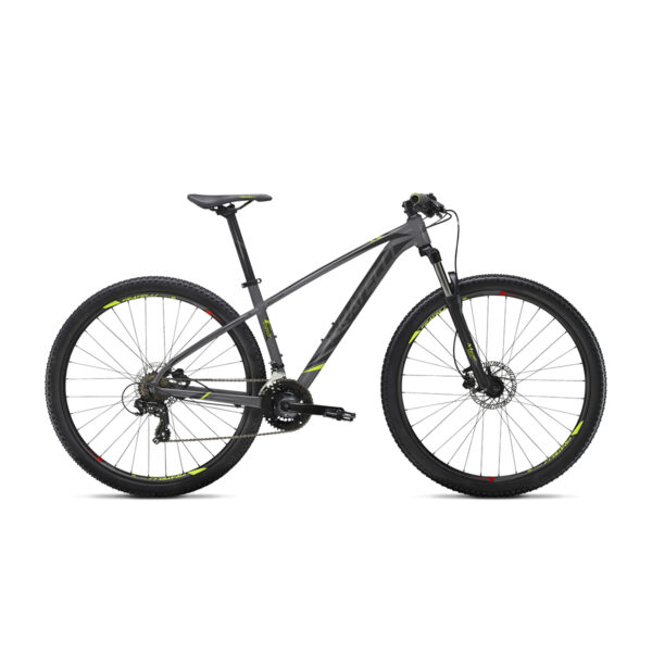 aluminio 27,5” y 29” / Frenos de disco hidráulico / Suspensión en aluminio con bloqueo / Pedal en aleación de aluminio / Pintura con acabados mate