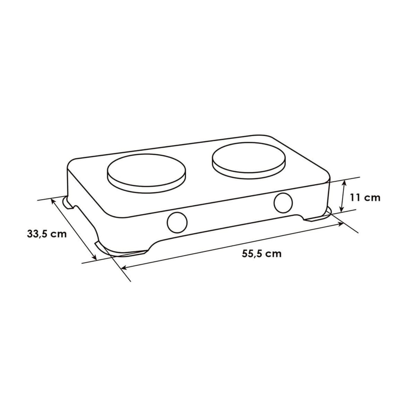 Estufa de sobremesa, dos parrillas superiores sencillas en alambrón, perillas ergonómicas, 1 quemador rápido y 1 ultra rápido.