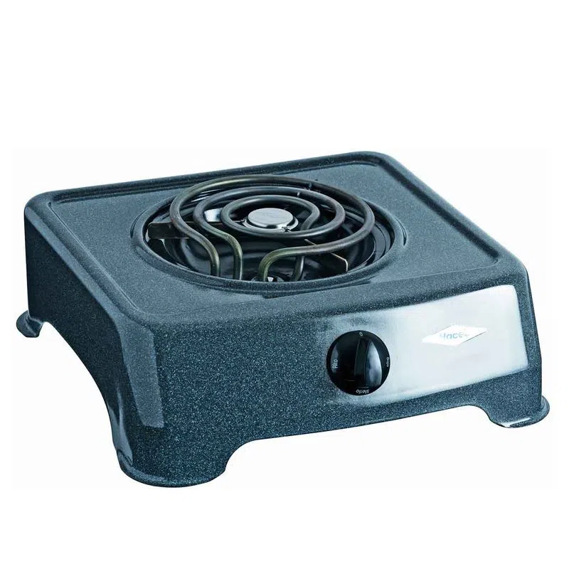 Cocineta eléctrica de 1 puesto con resistencia eléctrica tubular y acabado en esmalte porcelanizado, resistente a altas temperaturas. Es la solución perfecta para usar en el lugar que desees, acompañada de su resistencia que brindará la temperatura esperada a sus preparaciones y con diseño que evita se filtren liquides en su interior.