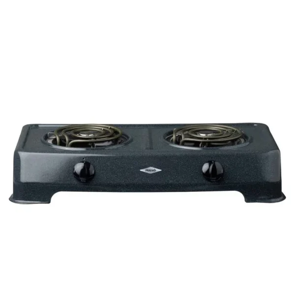 Cocineta eléctrica de 2 facil de usar en cualquier espacio, su estructura porcelanizada permite la fácil limpieza del equipo, además, su resistencia tubular permite la distribución correcta de la temperatura.