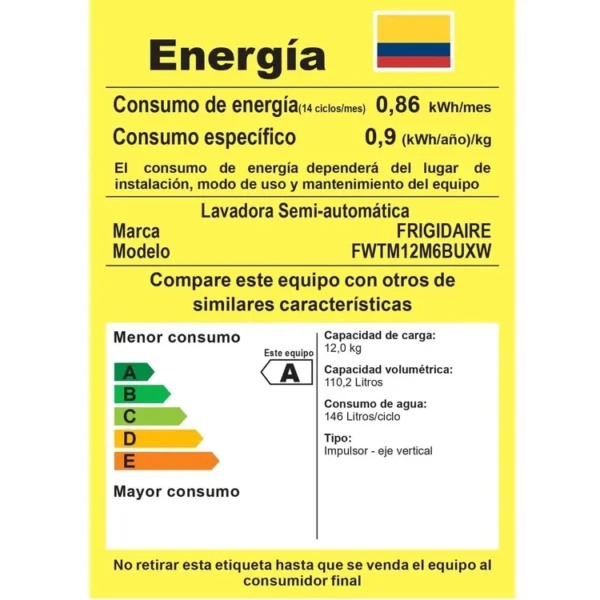 | tipo de alimentación de la lavadora | energía eléctrica |