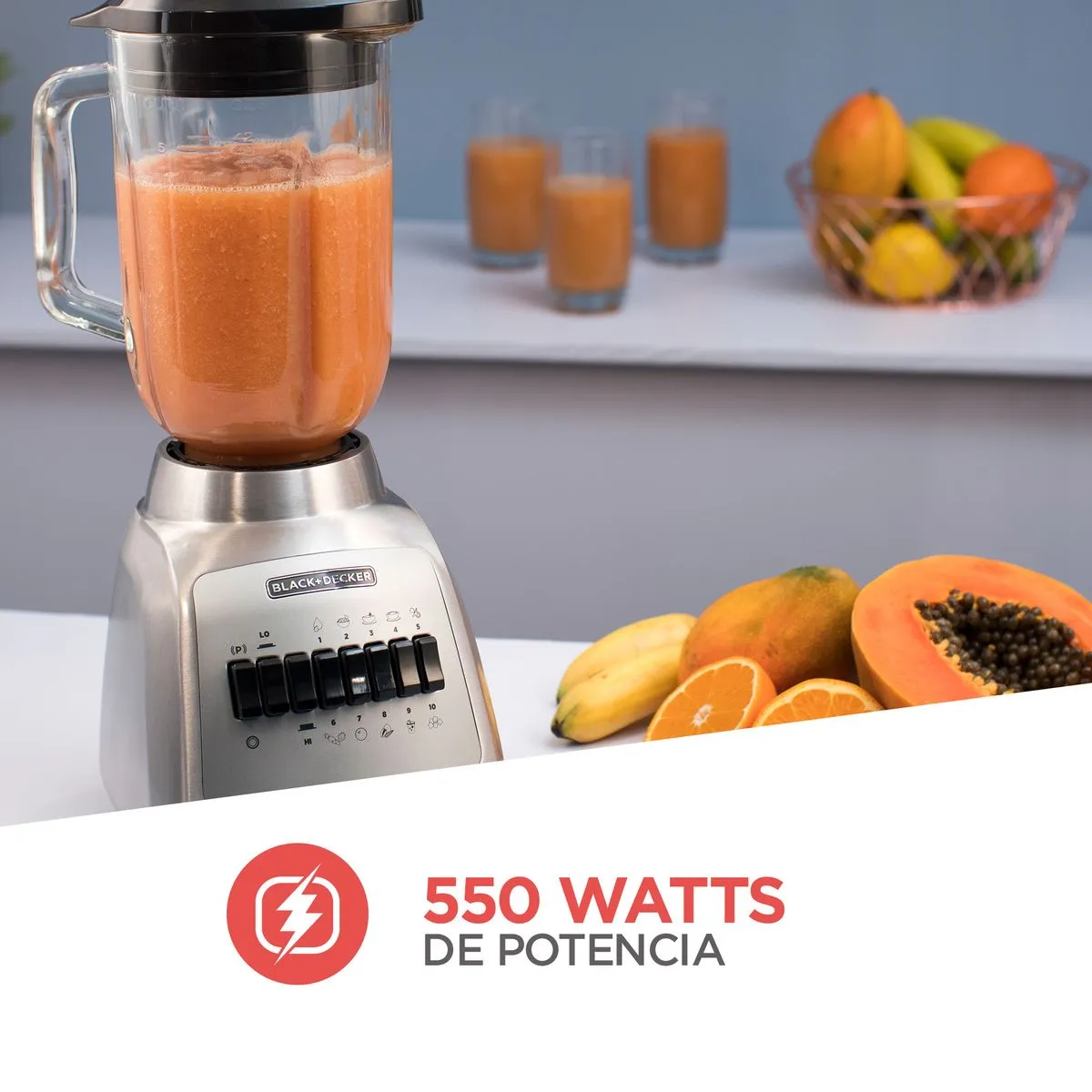 - Modelo: Licuadora Black and Decker 550 W 4 Puntas, jarra de Vidrio BLBD210GSS