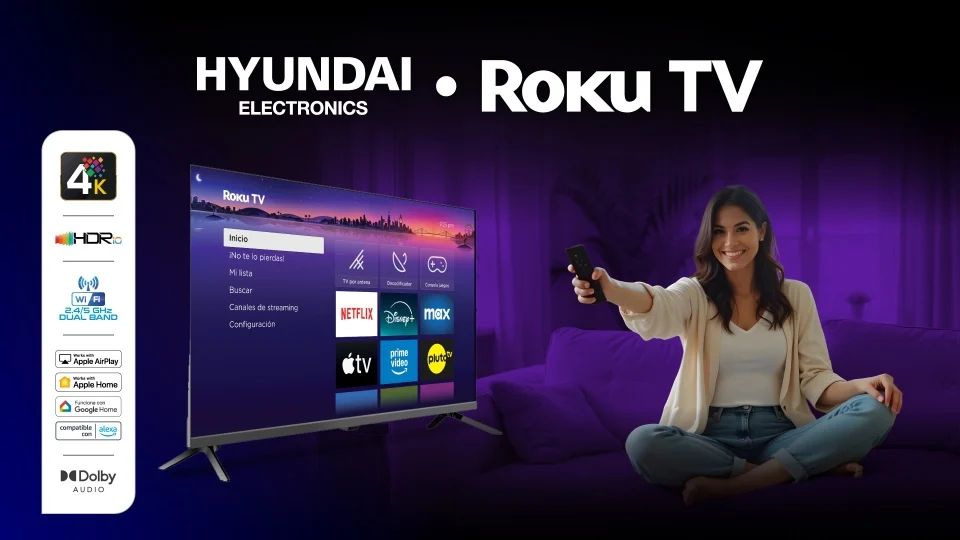 Disfruta de una experiencia visual superior con el Televisor Hyundai Smart TV 50” UHD 4K. Su sistema Roku TV te permite acceder a miles de aplicaciones y contenido en streaming con una interfaz rápida y sencilla.